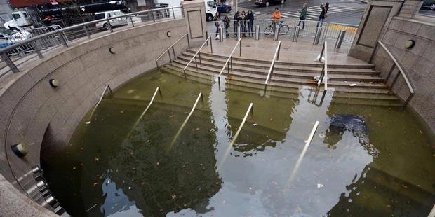 Pintu masuk stadion Bowling Green di Battery Park, New York pasca terjangan badai sandy. Badai super yang menyebabkan lumpuhnya pasokan listrik keberbagai daerah dan juga transportasi.